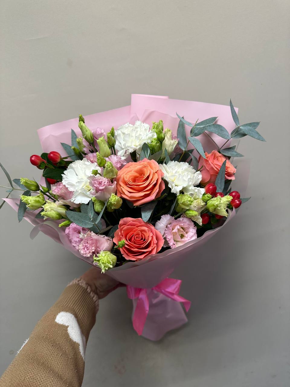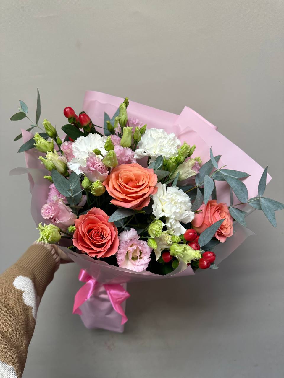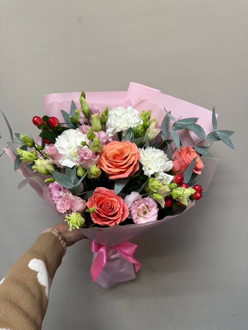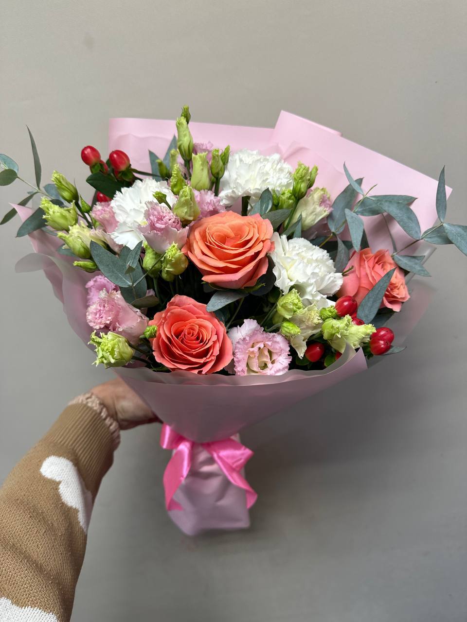 Букет из роз, эустом и диантусов
